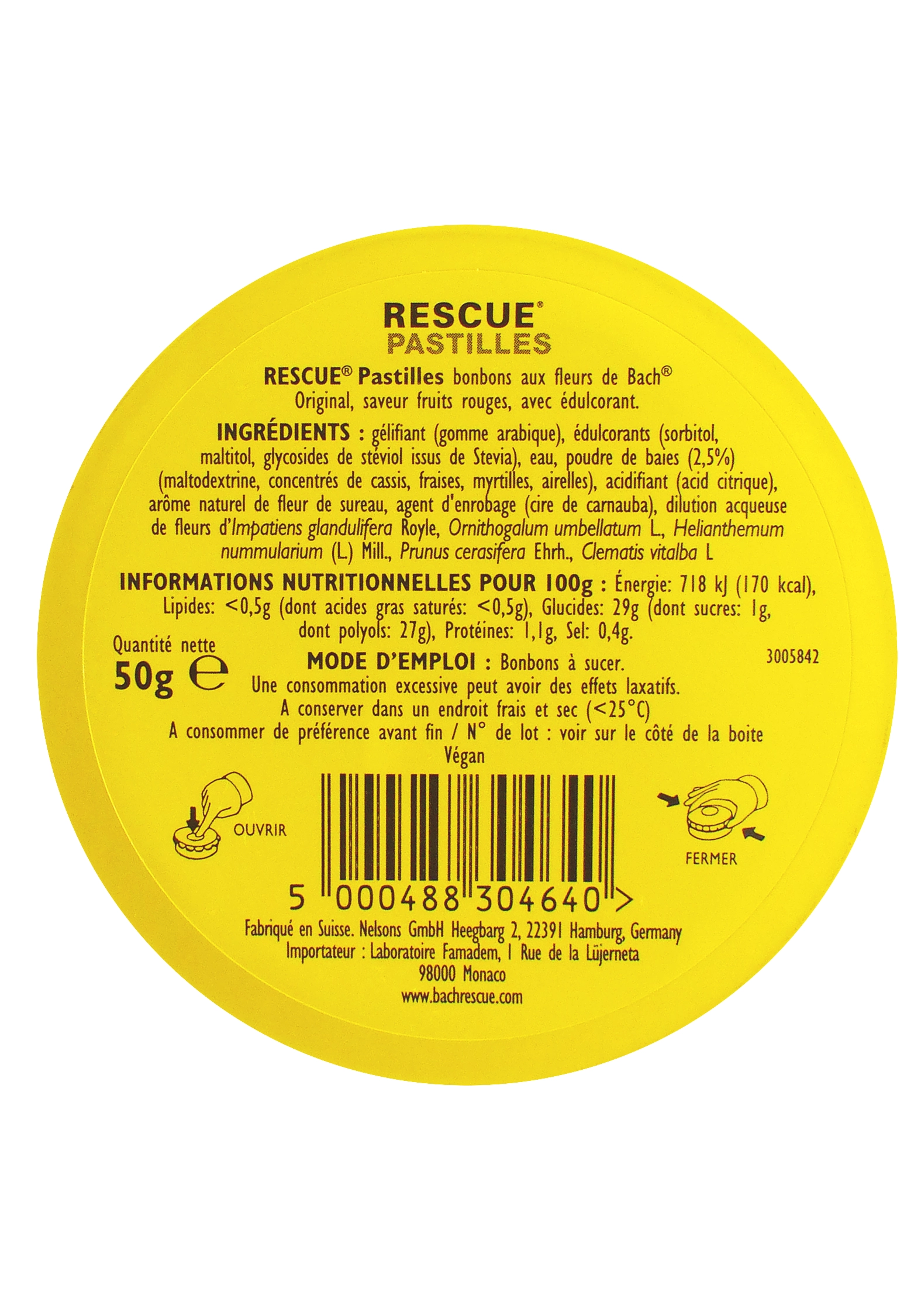Leur saveur fruitée et naturelle, à base d’arômes de fruits rouges, rend leur consommation agréable et contribue à un moment de bien-être sucré. Présentées dans une petite boîte métallique de 50 g, les Rescue Pastilles Fruits Rouges se glissent aisément dans un sac ou une poche, pour une utilisation quotidienne et pratique. Ce format nomade en fait un véritable compagnon de sérénité à portée de main.