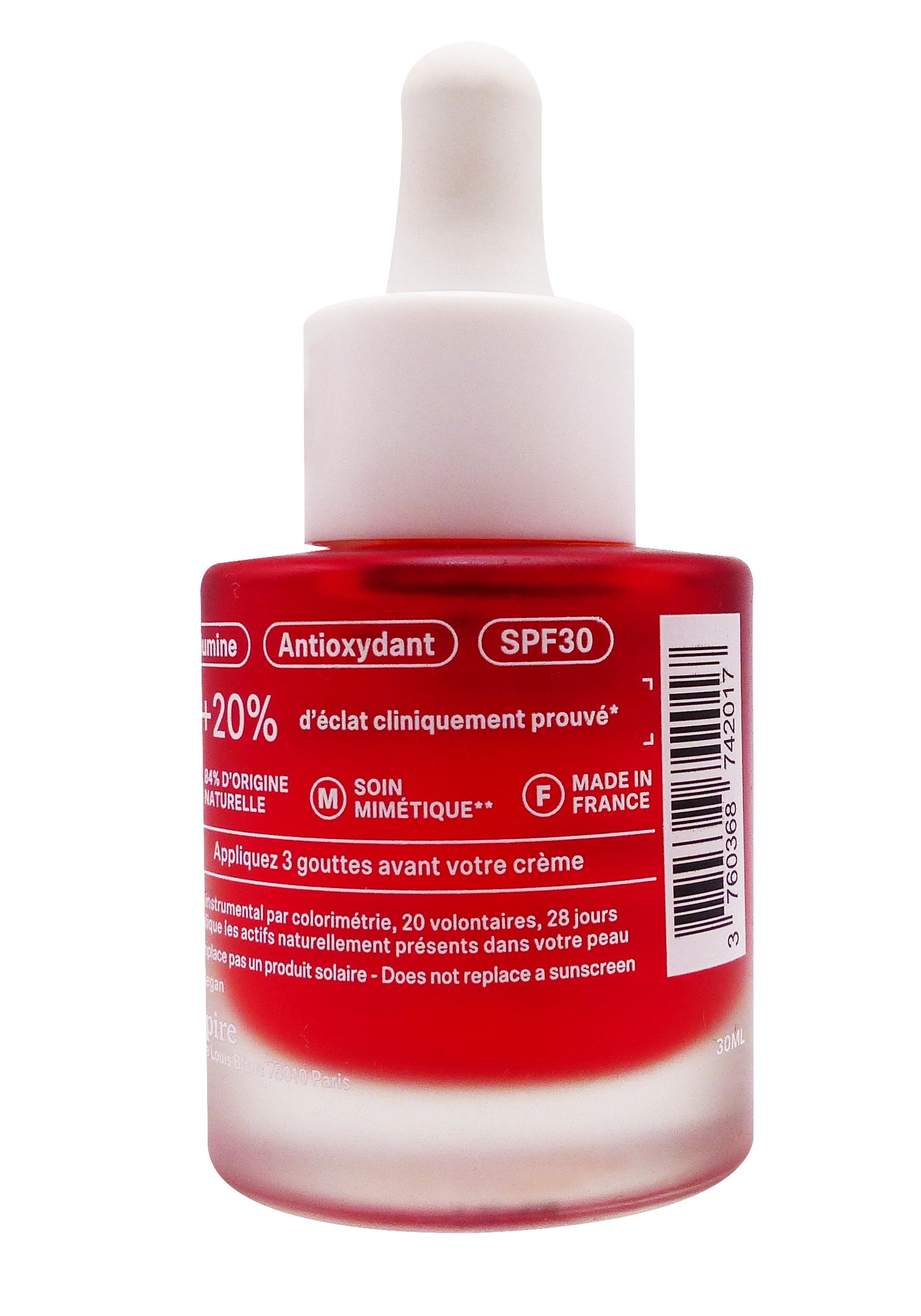 - Effet glow immédiat, teint plus lumineux, unifié et visiblement reposé, sans effet autobronzant ni fini gras.