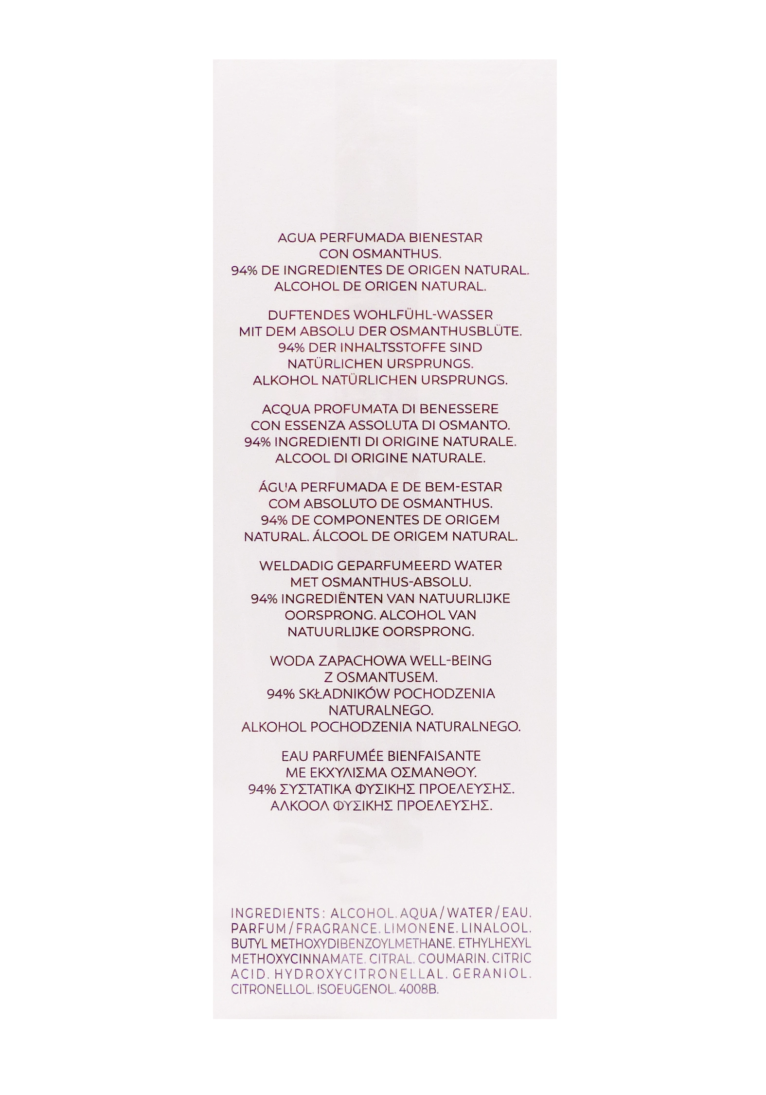 Son flacon de 100 ml, pratique et élégant, permet une application modulable au quotidien. Idéale pour accompagner les rituels parfumés, cette eau parfumée peut être portée tout au long de la journée, en toutes occasions, offrant un moment de bien-être naturel et une signature olfactive élégante qui invite au bonheur et à la légèreté.