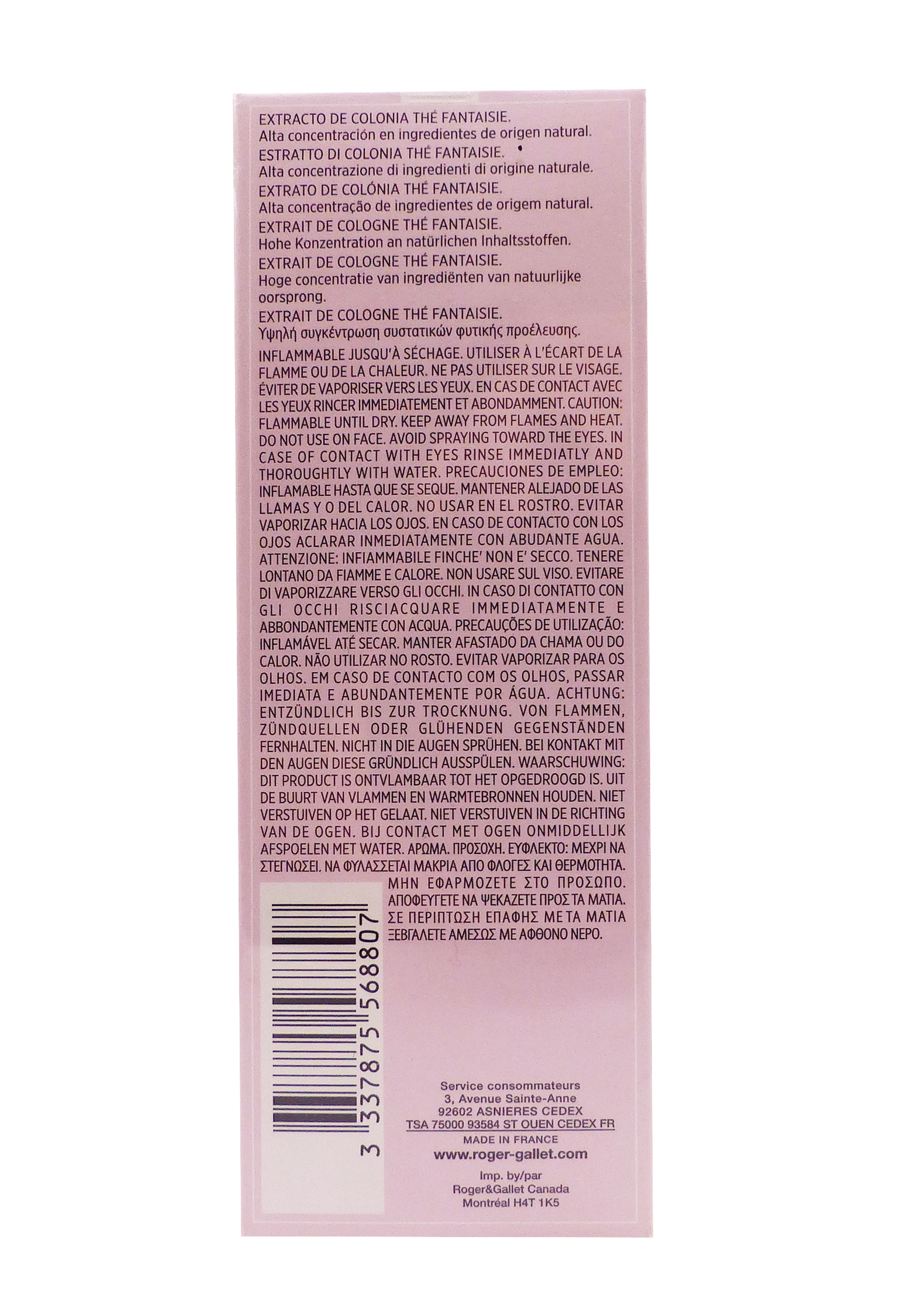 ROGER & GALLET EXTRAIT DE COLOGNE THE FANTAISIE 100 ML