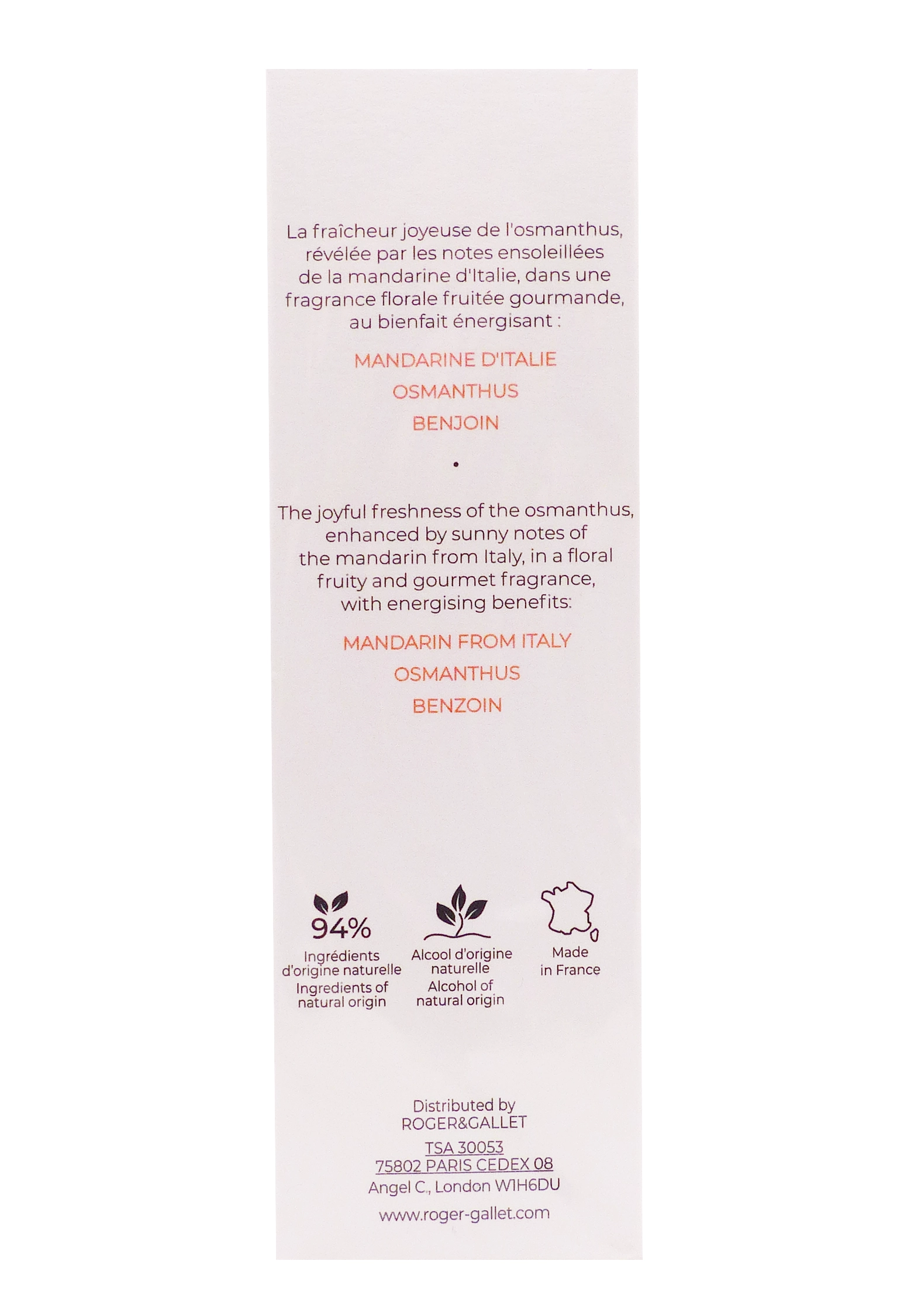 Son format 30 ml en fait le compagnon idéal pour les déplacements, les retouches en journée ou pour découvrir l’univers raffiné de la maison Roger & Gallet. Compact et élégant, le flacon laisse apparaître la teinte chaleureuse du jus, rappelant la lumière dorée de l’osmanthus en fleurs.