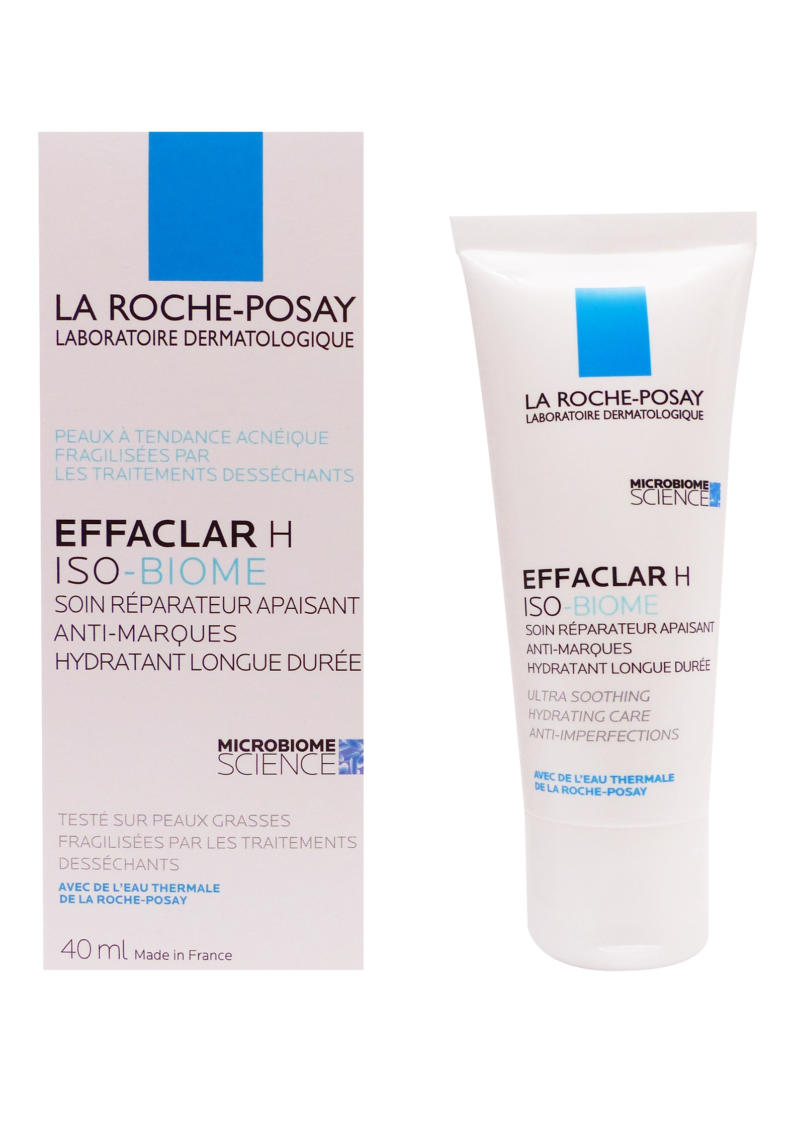 La Roche-Posay Effaclar H Iso-Biome Soin Réparateur Apaisant 40 ml est un soin dermatologique spécifiquement formulé pour les peaux fragilisées par les traitements anti–acnéiques. Les cures prescrites pour lutter contre les imperfections, bien qu’efficaces, peuvent souvent induire une sécheresse cutanée marquée, un inconfort et un déséquilibre du microbiome cutané. Développé par le laboratoire La Roche-Posay, ce soin a été conçu pour répondre à ces besoins précis grâce à une combinaison d’actifs apaisants et réparateurs.