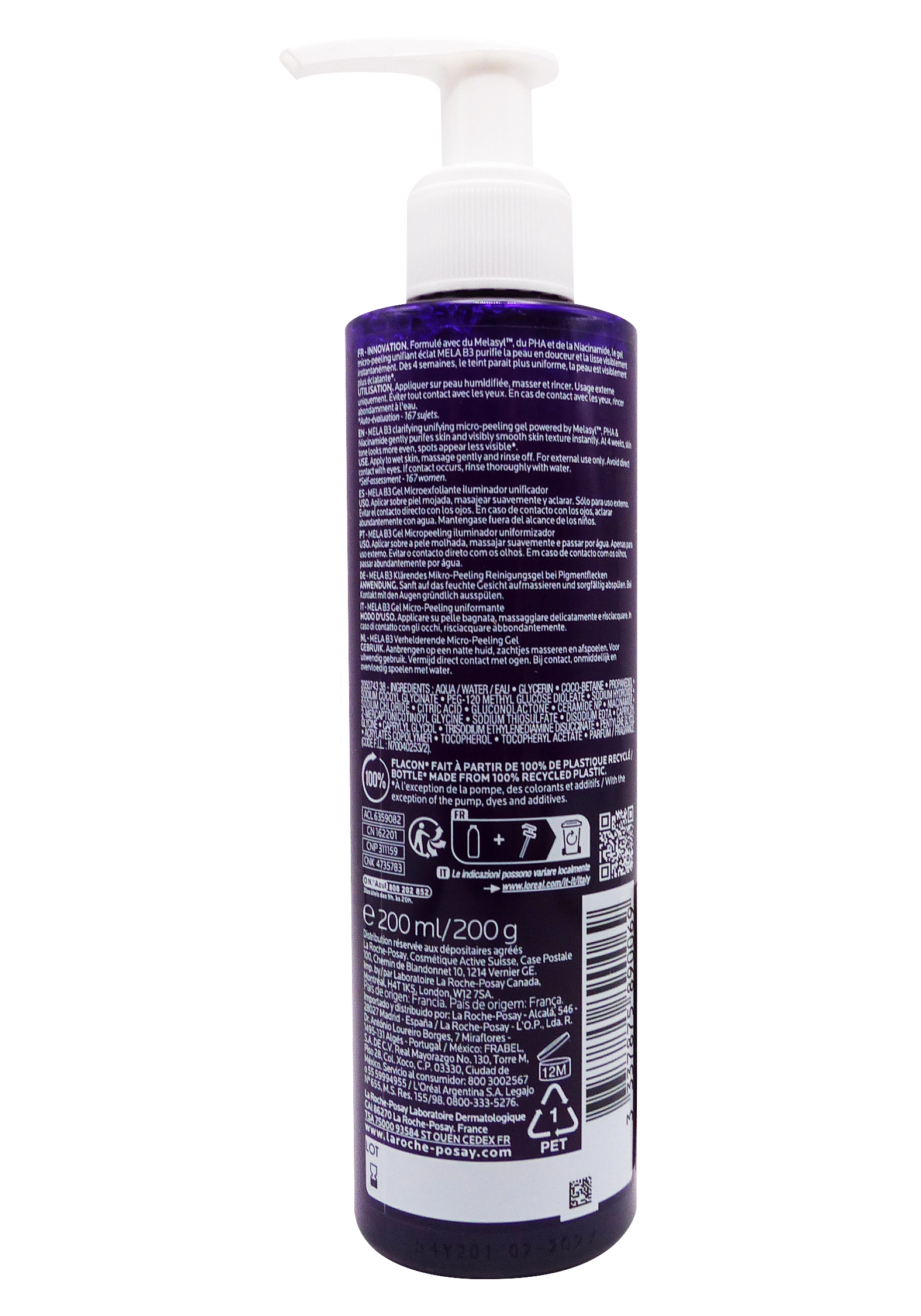Le soin nettoyant La Roche-Posay Mela B3 Gel Micro-Peeling 200 ml est conçu pour les peaux sujettes aux taches pigmentaires, au teint irrégulier et au manque de luminosité. Formulé par le laboratoire dermatologique La Roche-Posay, ce gel nettoyant exfoliant doux associe une action micro-peeling à un complexe actif correcteur pour améliorer visiblement l’uniformité et l’éclat de la peau, tout en respectant sa sensibilité naturelle.