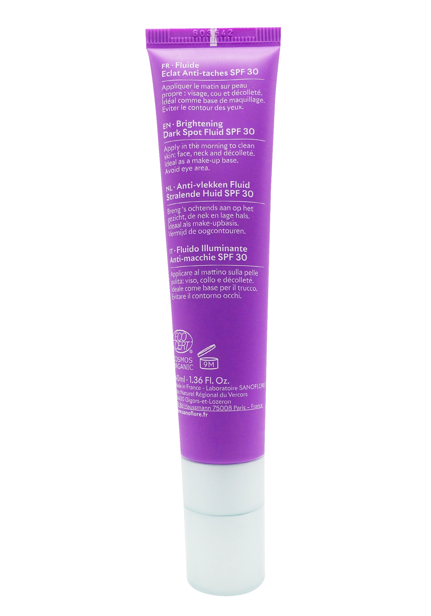 Le fluide éclat anti-taches SPF 30 Lumina 40ml Sanoflore contient :