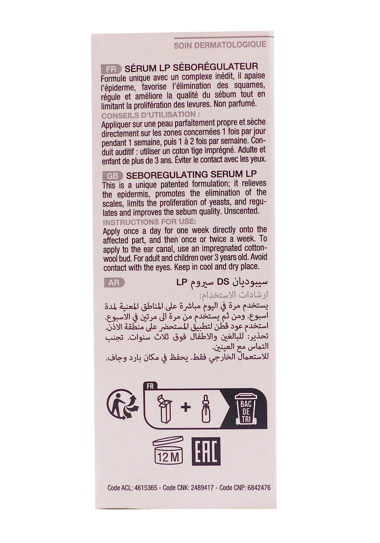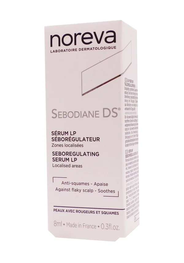 Noreva Sebodiane DS Sérum LP 8 ml est un soin dermatologique ciblé pour les états sébo‑squameux (peaux grasses avec rougeurs, squames et démangeaisons), notamment en cas de dermite séborrhéique sur le visage, le cuir chevelu ou certaines zones localisées (lisière du cuir chevelu, zones pileuses, conduit auditif externe). Ce sérum agit au cœur de la glande sébacée pour réguler la production de sébum, limiter la prolifération de levures impliquées dans ces états (comme Malassezia), apaiser les irritations et favoriser l’élimination des squames tout en améliorant la qualité du film hydrolipidique.