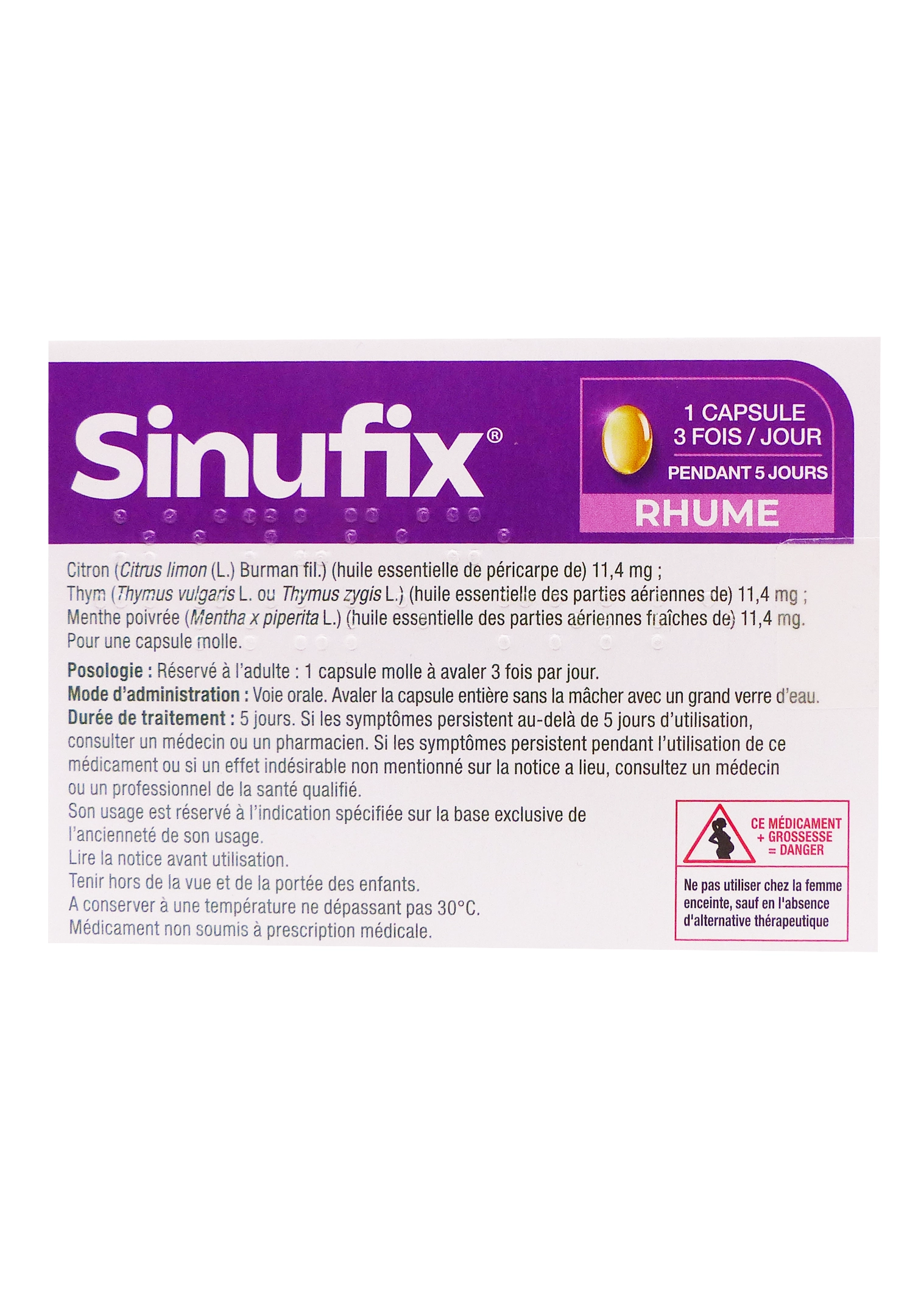 - Pratique pour 5 jours de traitement (15 capsules), sans somnolence ni dépendance ; accessible sans ordonnance.