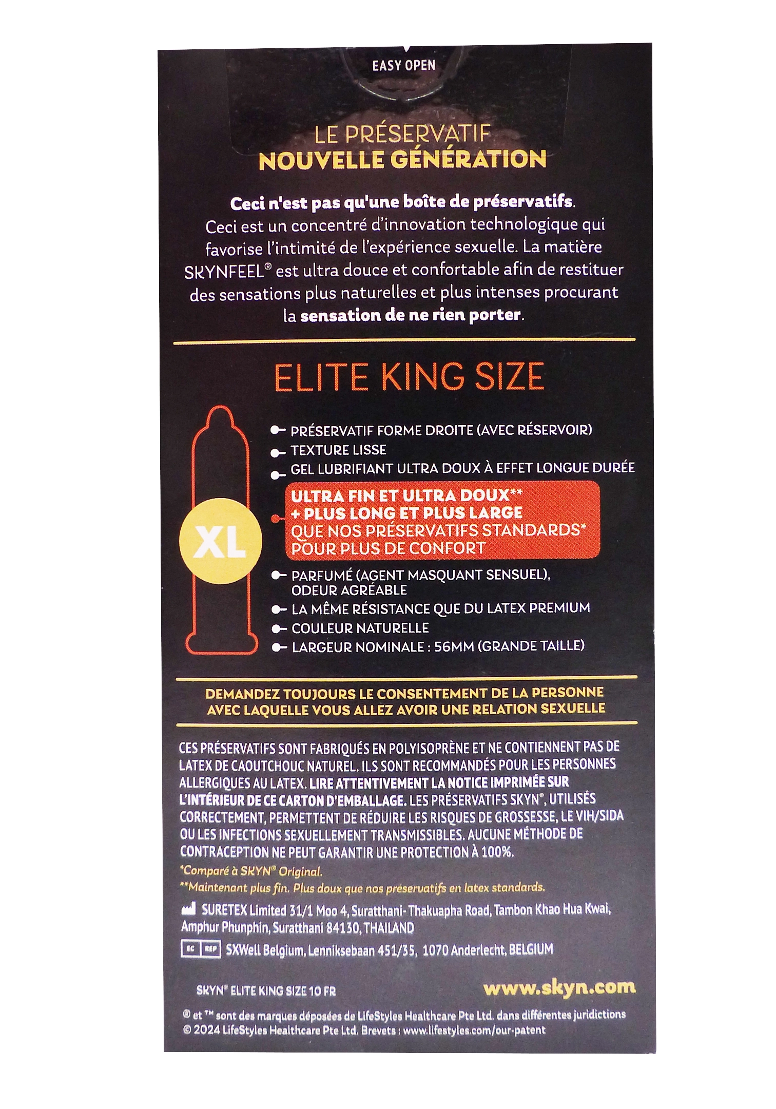 Composition de Skyn Elite King Size 10 préservatifs :