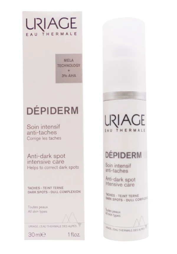Le Soin Intensif Anti-Taches Dépiderm Uriage 30 ml est un soin dermatologique de pointe conçu par le laboratoire Uriage pour corriger efficacement les taches brunes, affiner le grain de peau et unifier le teint. Ce soin s’adresse à toutes les carnations et à tous les types de peaux, même sensibles, grâce à une formule haute tolérance, non parfumée et non comédogène, testée sous contrôle dermatologique.