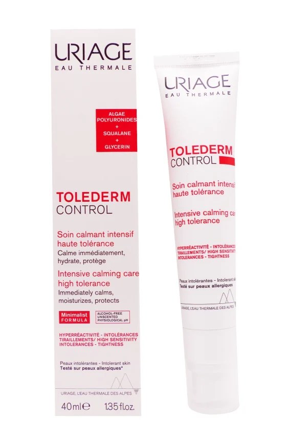Uriage soin calmant intensif haute tolérance Toléderm Control 40 ml est une crème minimaliste conçue pour les peaux intolérantes, hyper–réactives ou allergiques, qui apaise immédiatement picotements, tiraillements et échauffements. Sa formule pure à 97% d’origine naturelle renforce la barrière cutanée grâce à l’eau thermale d’Uriage et des actifs dermatologiques reconnus, offrant hydratation durable et confort sans irritation. Texture légère non grasse, sans parfum ni conservateurs agressifs, elle convient à un usage quotidien y compris après traitements dermatologiques agressifs.