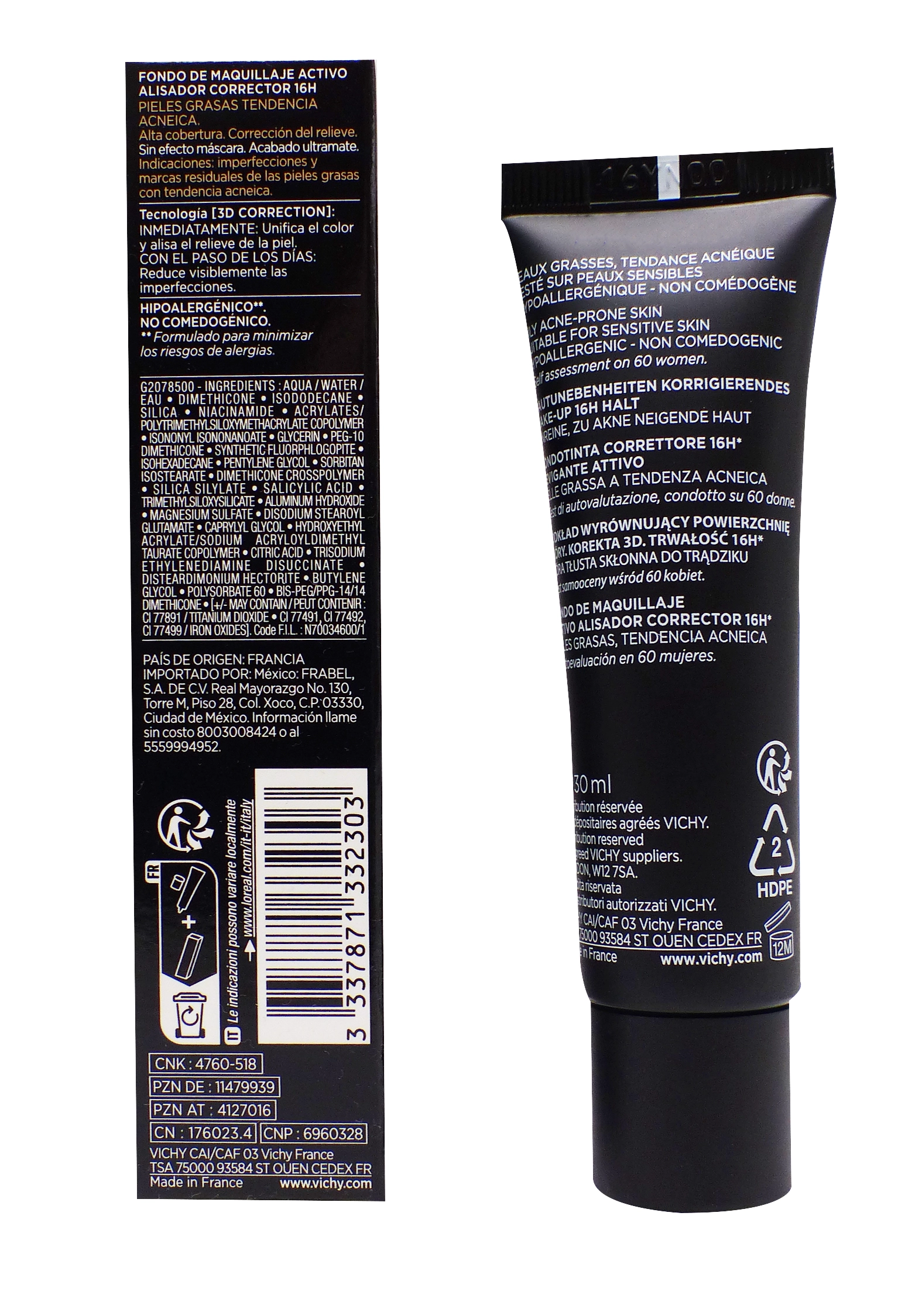 Ce produit est bien plus qu’un simple fond de teint : il s’agit d’un véritable soin resurfaçant, conçu pour corriger les imperfections sévères (cicatrices, pores, rougeurs, taches pigmentaires) grâce à une formule enrichie en actifs dermatologiques. La technologie Alliagel™ assure une correction anti-relief 3D, lissant les micro-reliefs et les creux pour un teint unifié et mat pendant 16 heures. La haute concentration de pigments minéraux et d’agents soft focus permet une couvrance optimale, sans effet masque.