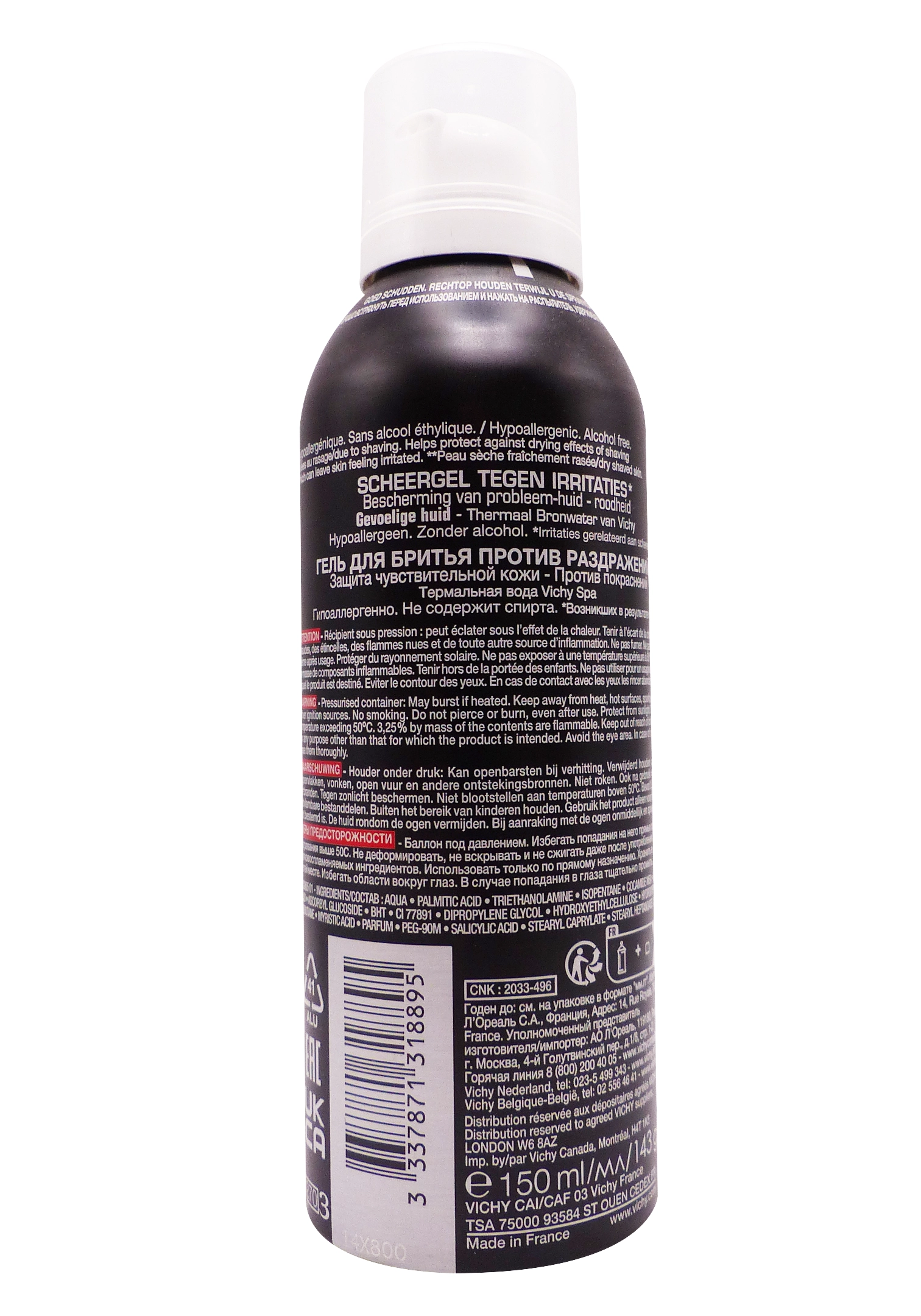 Enrichi en eau thermale de Vichy, vitamine Cg et acide salicylique, il facilite la glisse de la lame tout en prévenant irritations et poils incarnés.