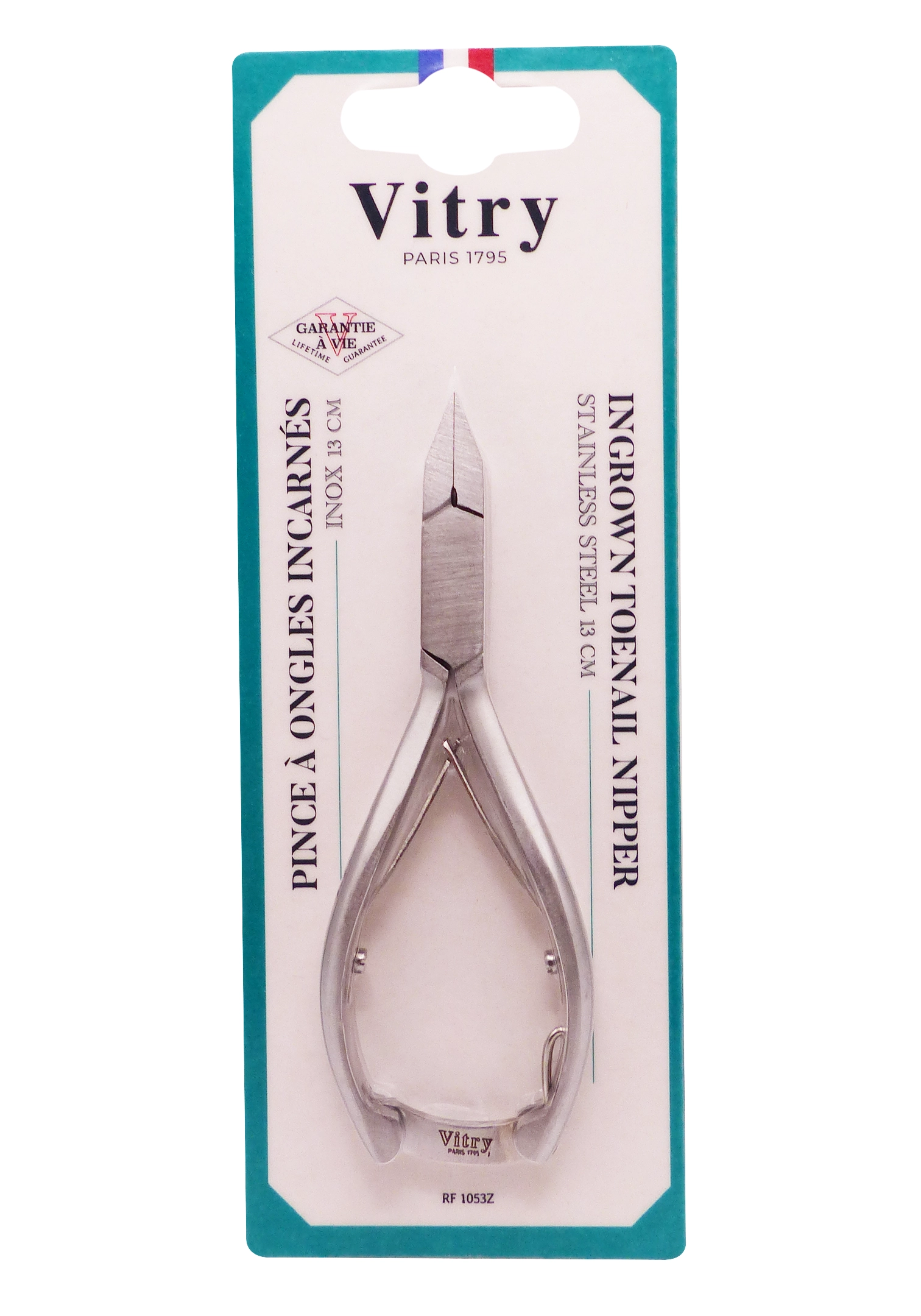 La pince à ongles incarnés Vitry 13 cm est réalisée en acier inoxydable, un matériau résistant à la corrosion et adapté au contact répété avec l’eau et les produits désinfectants. L’inox permet un nettoyage et une désinfection faciles, limitant la prolifération des micro‑organismes et prolongeant la durée de vie de l’instrument.