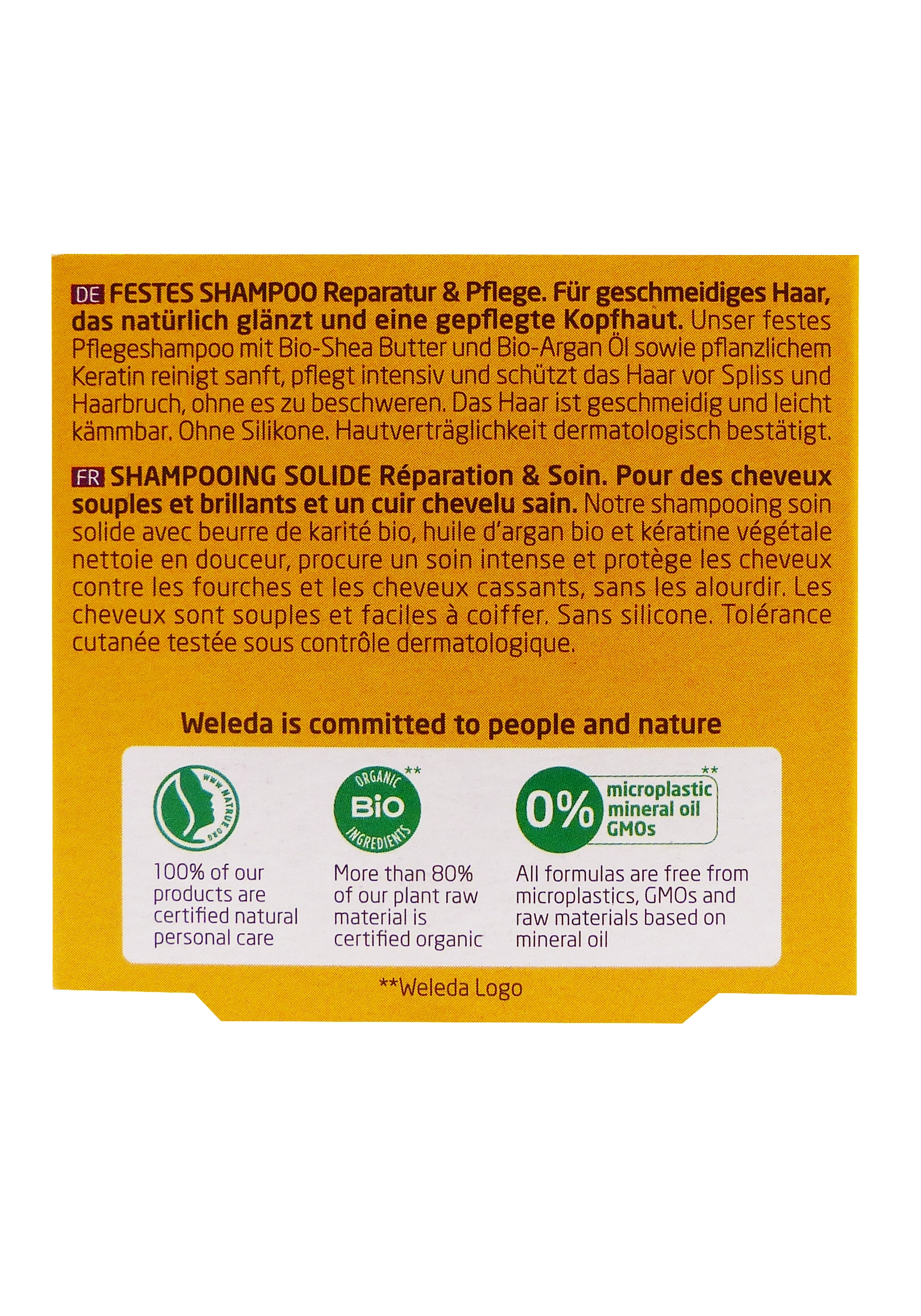 Weleda shampooing solide réparation et soin 50 ml est une innovation écologique et naturelle issue du laboratoire Weleda, pionnier dans la cosmétique bio et naturelle. Conçu pour restaurer, renforcer et protéger les cheveux abîmés, ce shampooing solide réparation agit en profondeur pour nourrir la fibre capillaire fragilisée tout en respectant l’équilibre du cuir chevelu.